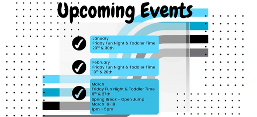 During the School Session ONLY (August 1 - May 31) Toddler Time is EVERY Wednesday from 9:00am - 11:00am and on scheduled Fridays from 4:00pm-6:00pm. The cost is just $7 per hour or stay the entire 2 hours for $10, you and your child can have an awesome time in our our Preschool Gym that has mini versions of some of our Main Gym amenities with mini trampolines, a cargo net, a ball pit, a slide, a tunnel and monkey bars.